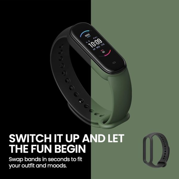 Amazfit Band 5 Fitness Tracker with Alexa Built-in, 15-Day Battery Life, Blood Oxygen, Heart Rate, Sleep Monitoring, Women’s Health Tracking, Music Control, Water Resistant, Black. With 24/7 monitoring of your heart rate, Amazfit Band 5 performs real-time heart rate monitoring and high heart rate warning.