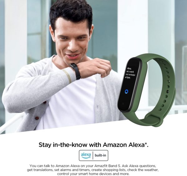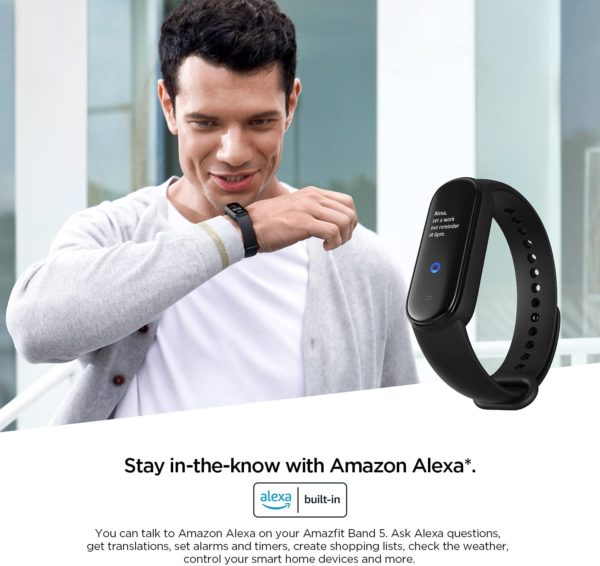 Amazfit Band 5 Fitness Tracker with Alexa Built-in, 15-Day Battery Life, Blood Oxygen, Heart Rate, Sleep Monitoring, Women’s Health Tracking, Music Control, Water Resistant, Black (Model: S2005OV1N)