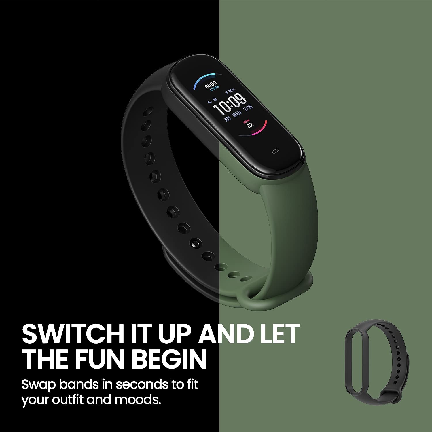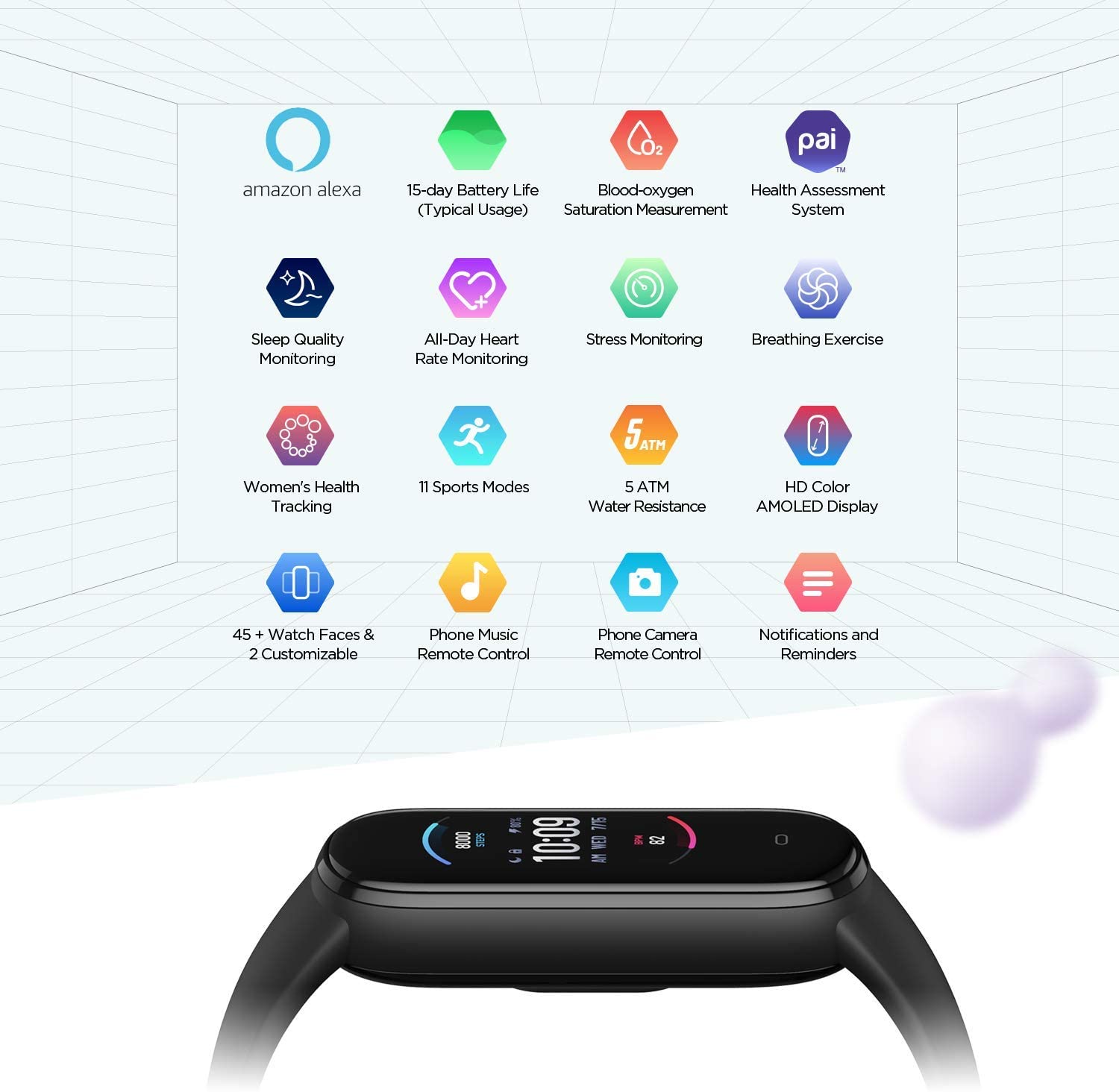 Amazfit Band 5 Fitness Tracker with Alexa Built-in, 15-Day Battery Life, Blood Oxygen, Heart Rate, Sleep Monitoring, Women’s Health Tracking, Music Control, Water Resistant, Black (Model: S2005OV1N)