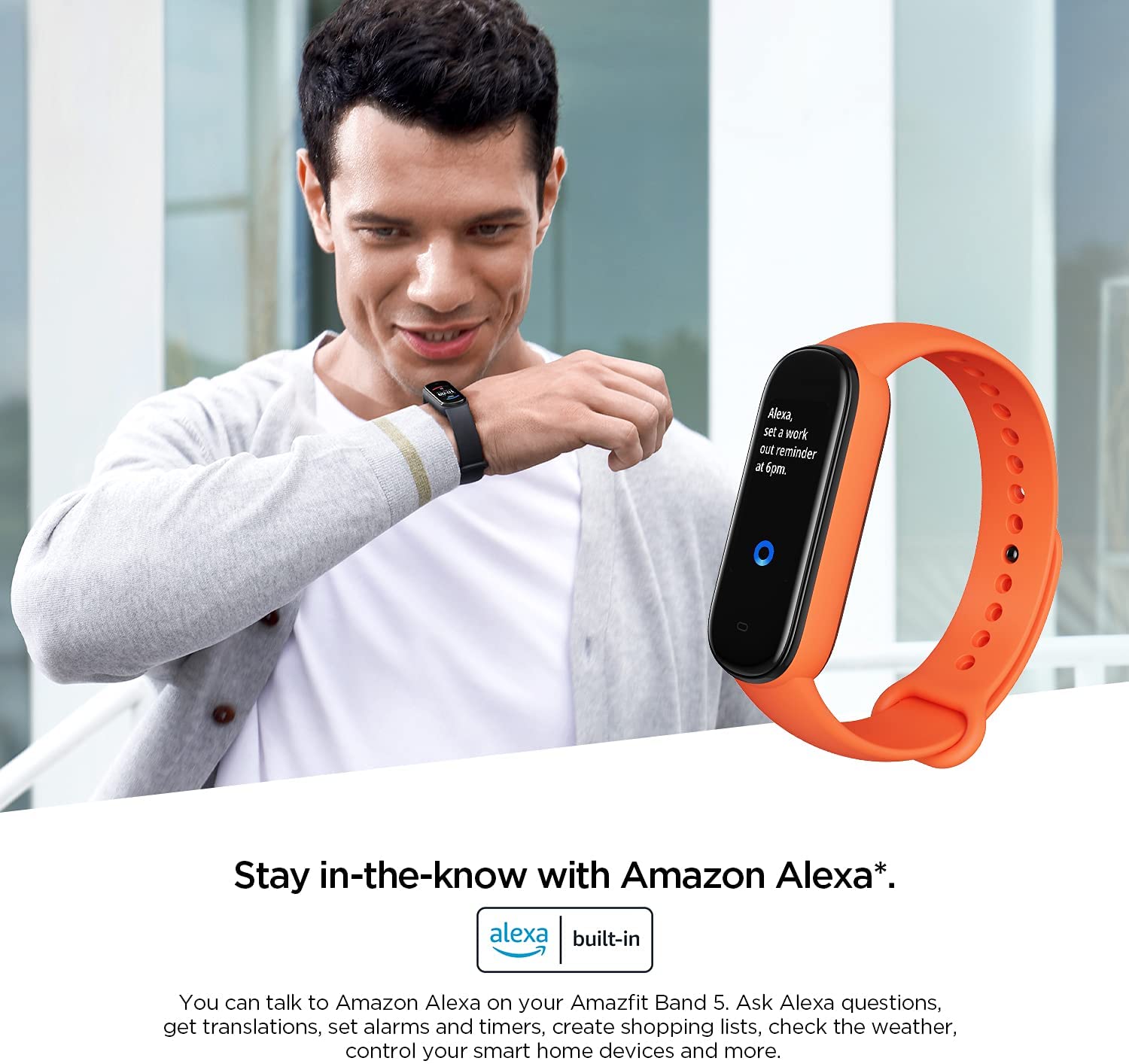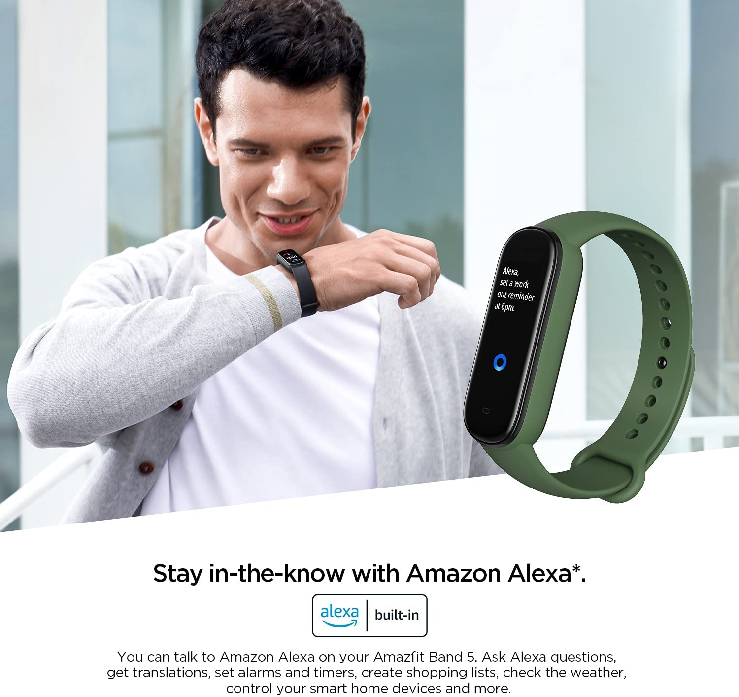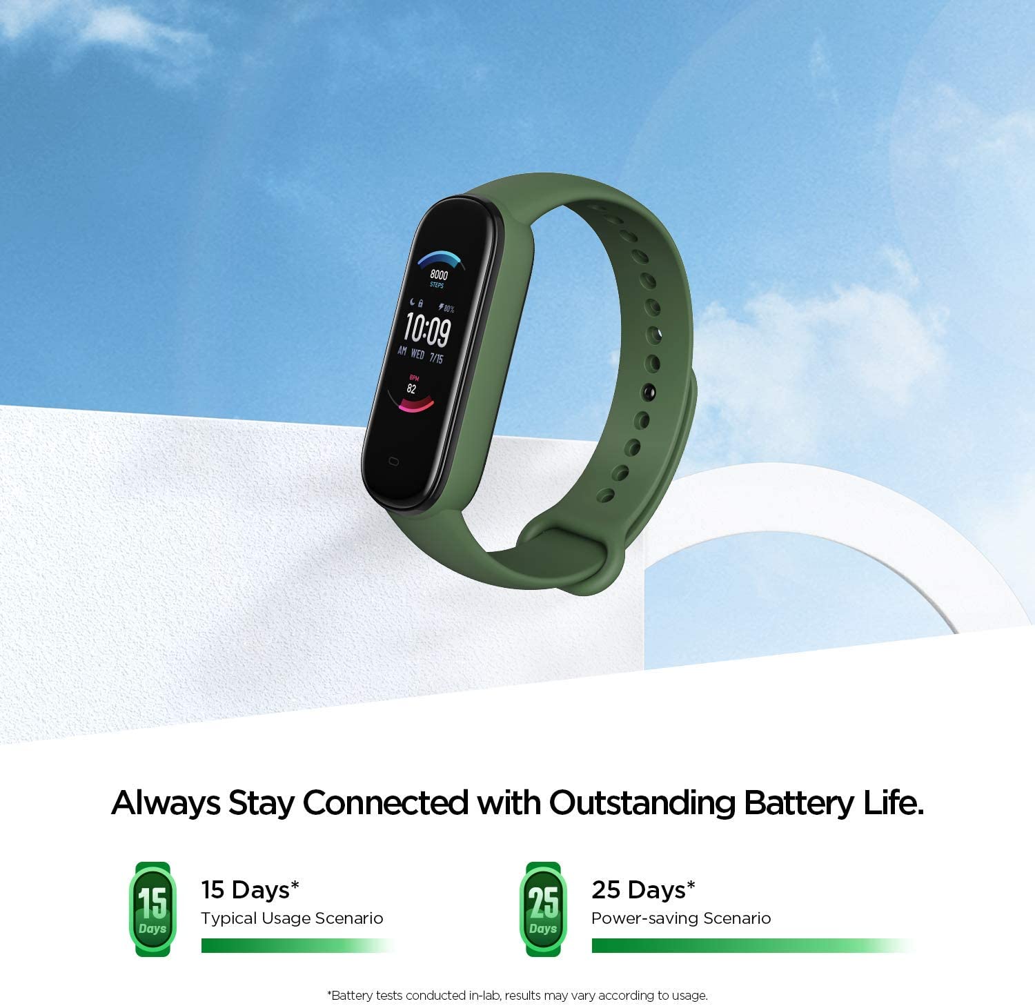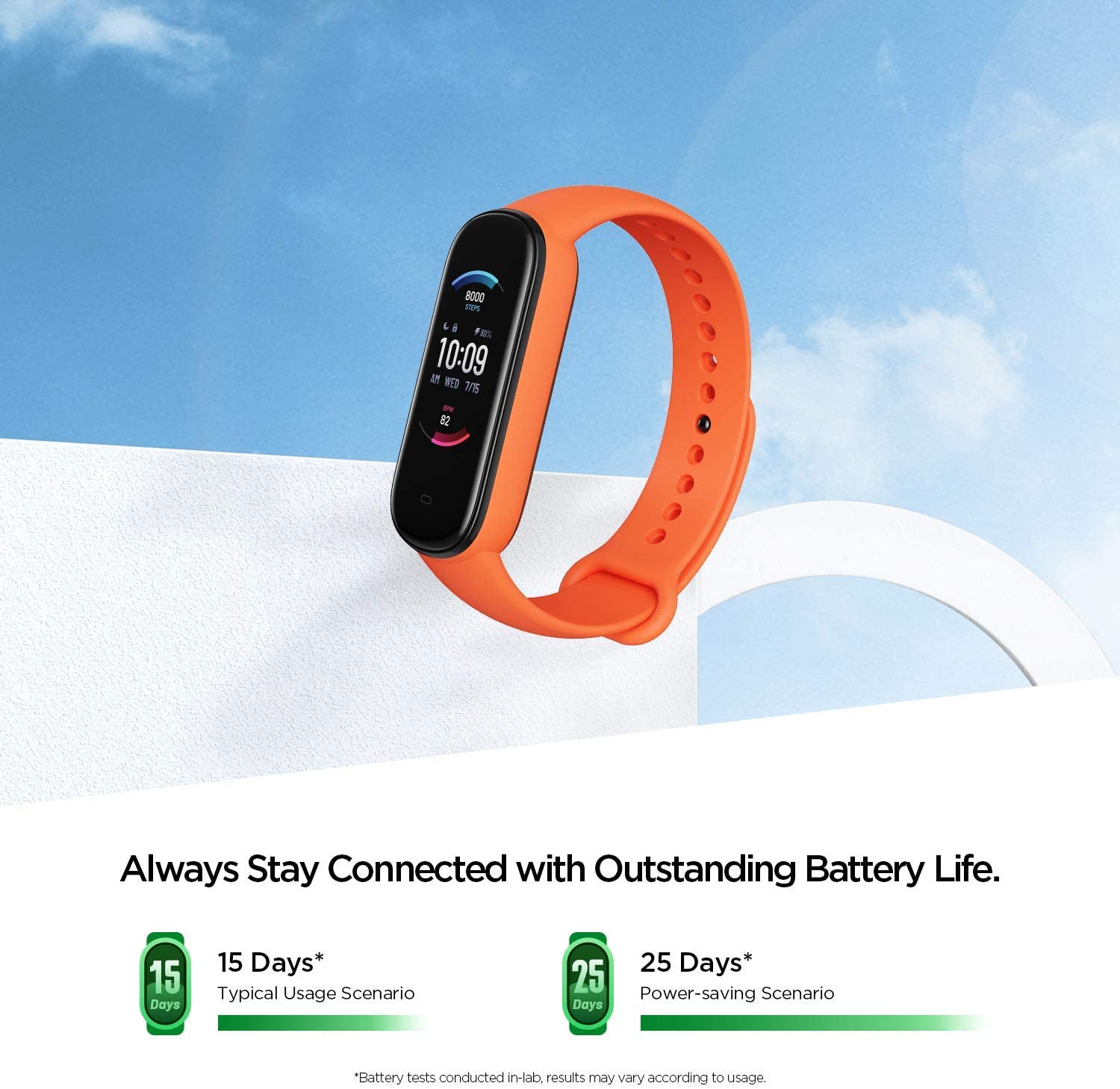 Amazfit Band 5 Fitness Tracker with Alexa Built-in, 15-Day Battery Life, Blood Oxygen, Heart Rate, Sleep Monitoring, Women’s Health Tracking, Music Control, Water Resistant, Black. With 24/7 monitoring of your heart rate, Amazfit Band 5 performs real-time heart rate monitoring and high heart rate warning.