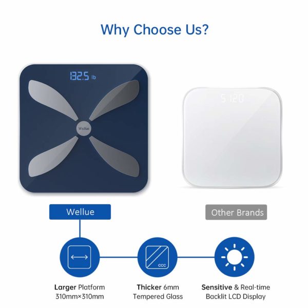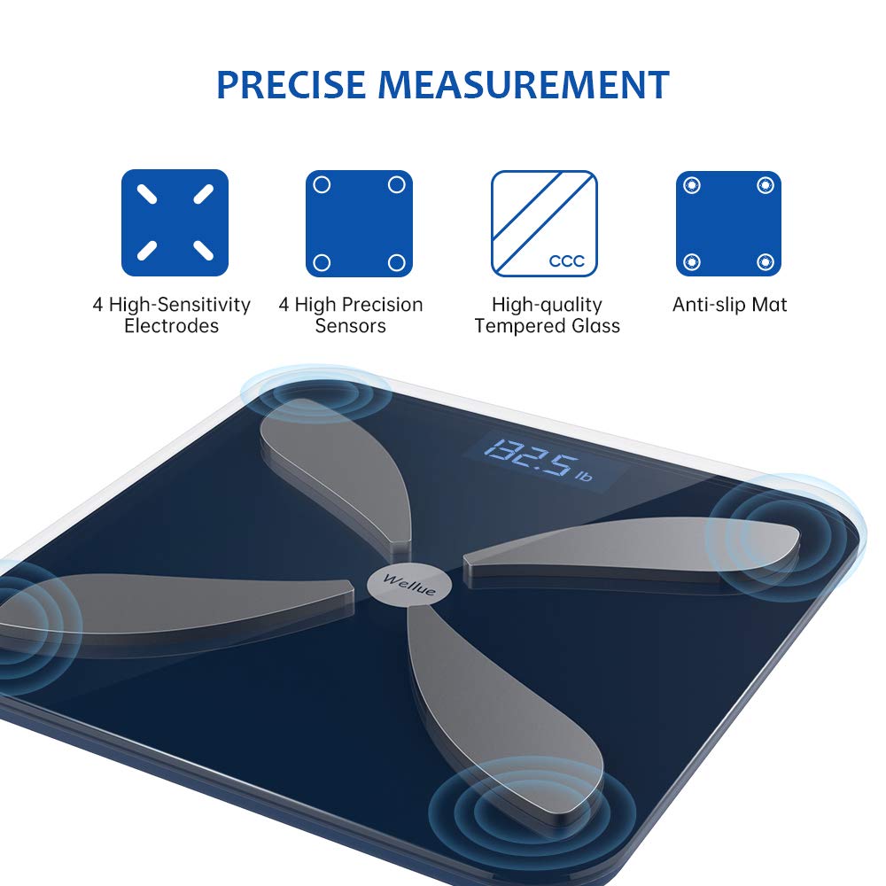 Body Fat Scale, Wellue Digital BMI Smart Scale for Body Weight, Fitness and Health Tracking, High Precision Wireless Weighing Bathroom Scale, Body Composition Monitor with APP, Bluetooth 396 lbs
