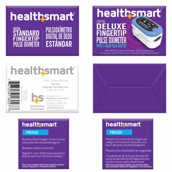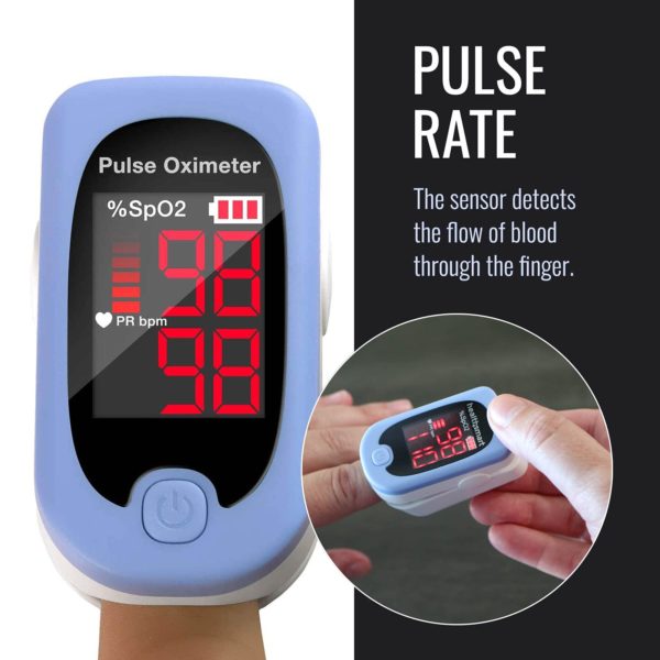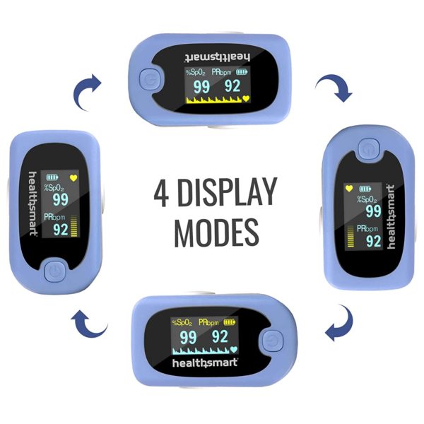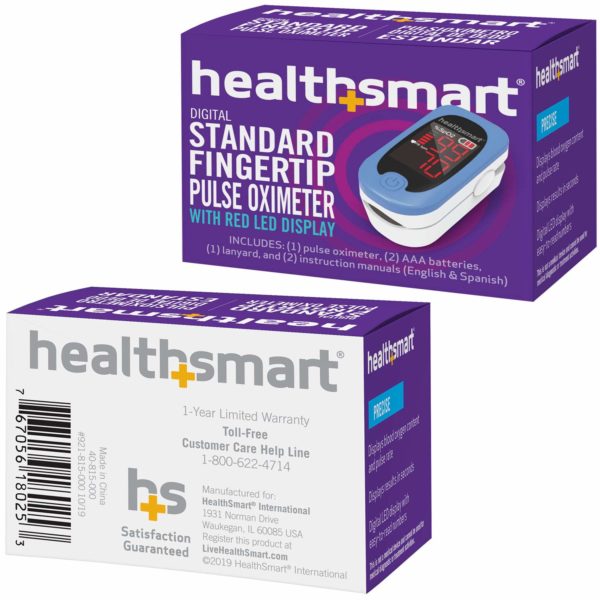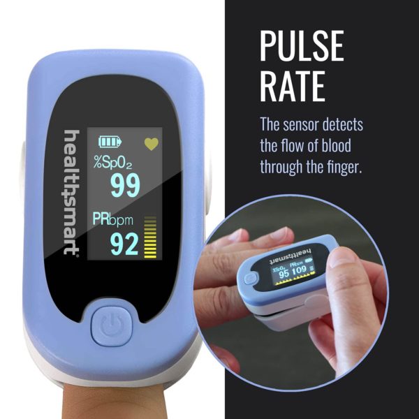 HealthSmart Pulse Oximeter for Fingertip That Displays Blood Oxygen Saturation Content, Pulse Rate and Pulse Bar with LED Display and Readout, Accurate and Reliable, Deluxe