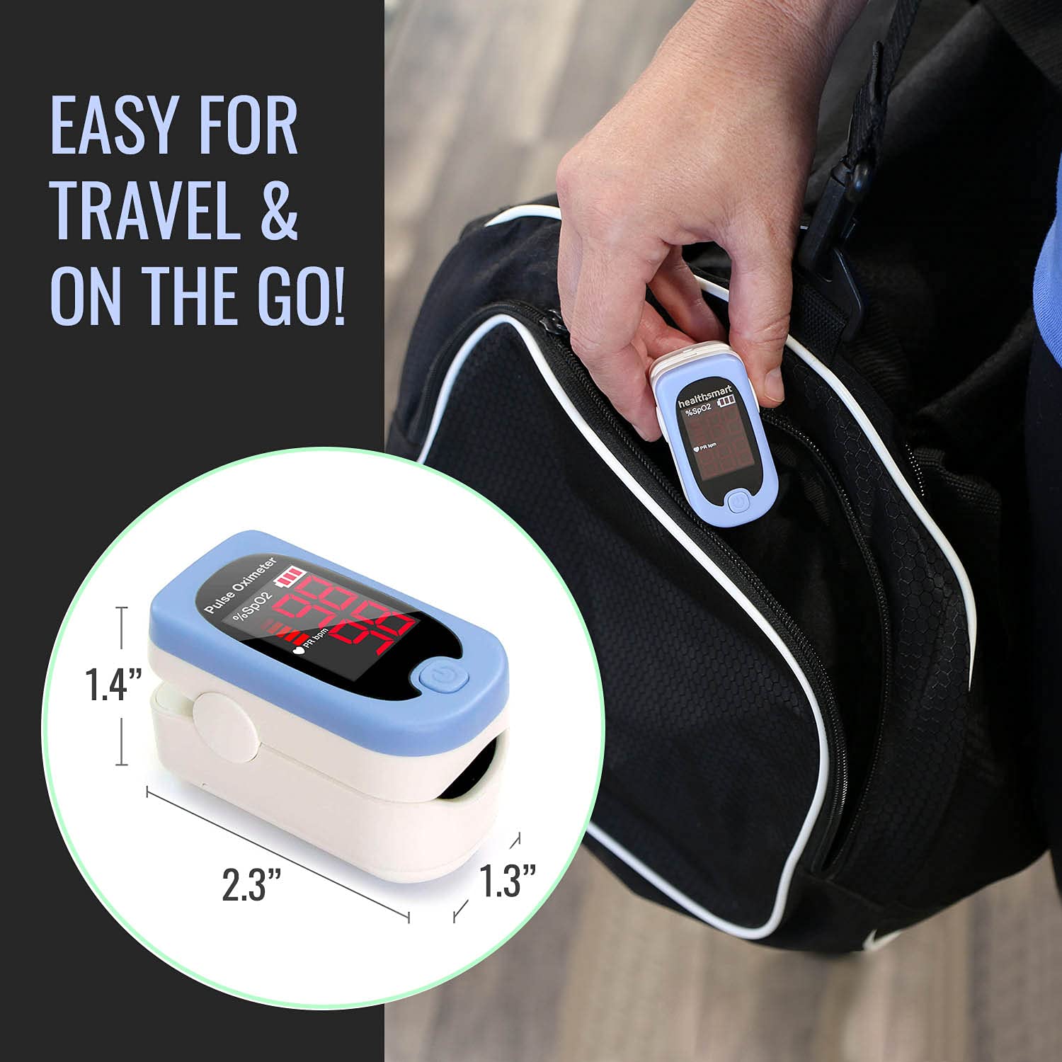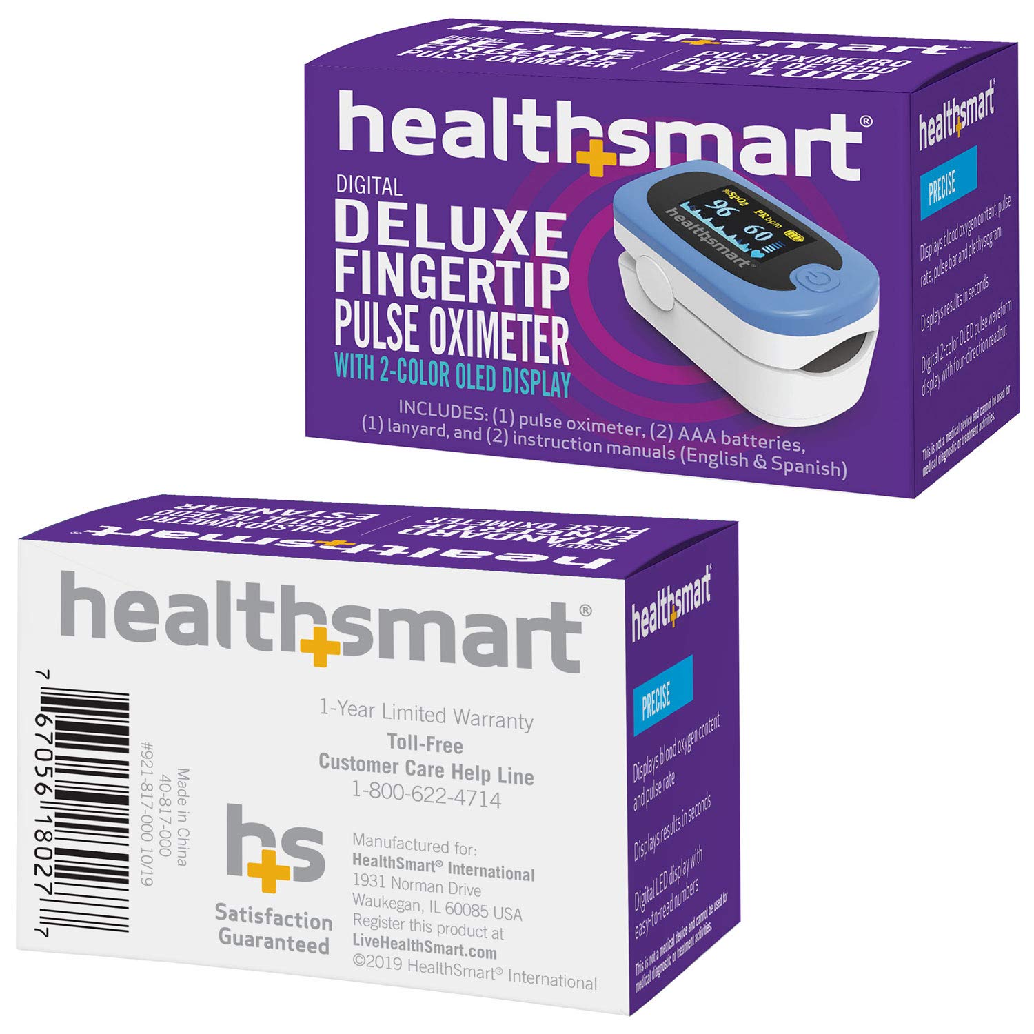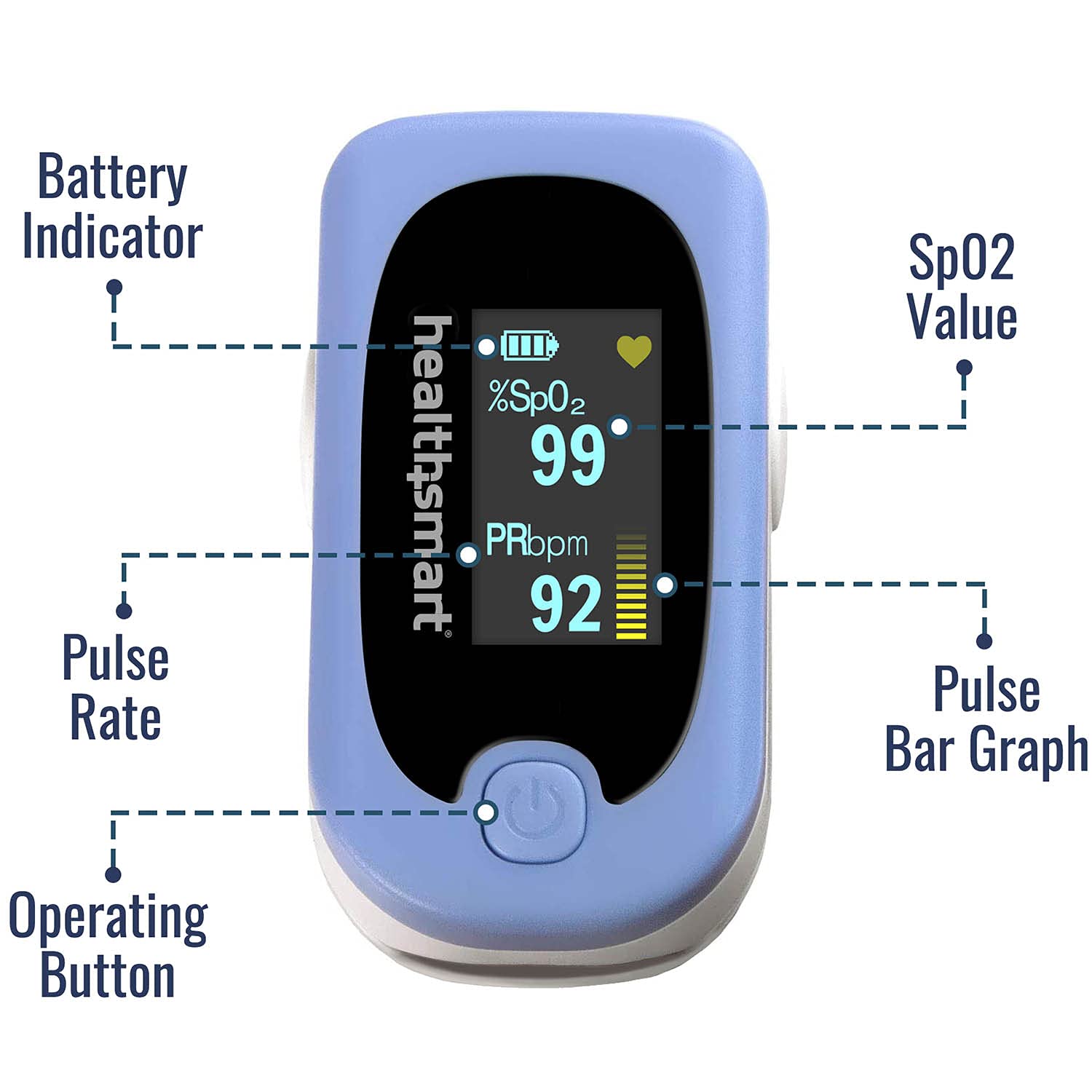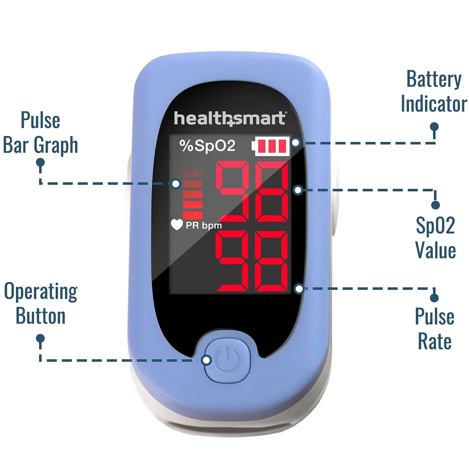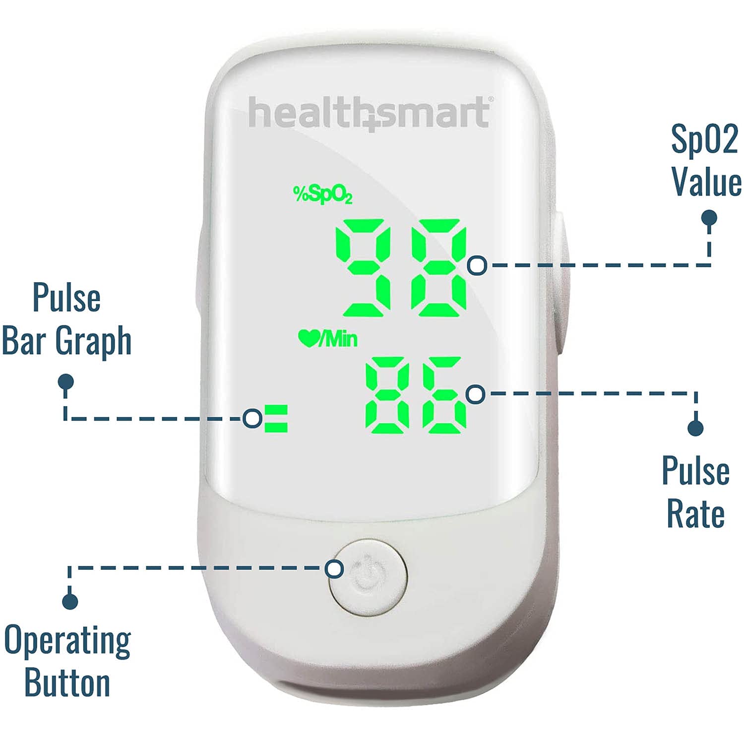 HealthSmart Pulse Oximeter for Fingertip That Displays Blood Oxygen Saturation Content, Pulse Rate and Pulse Bar with LED Display and Readout, Accurate and Reliable, Deluxe