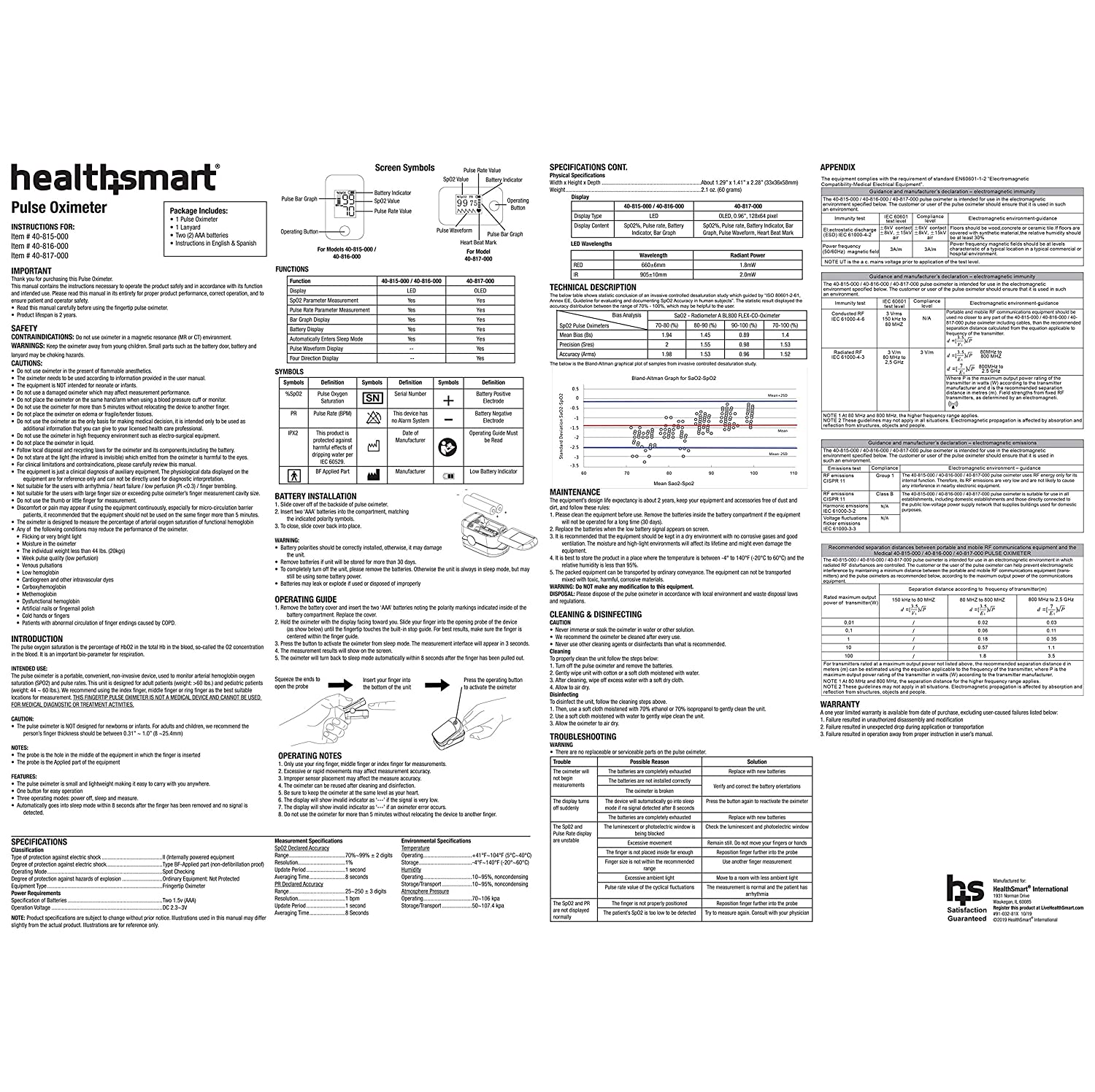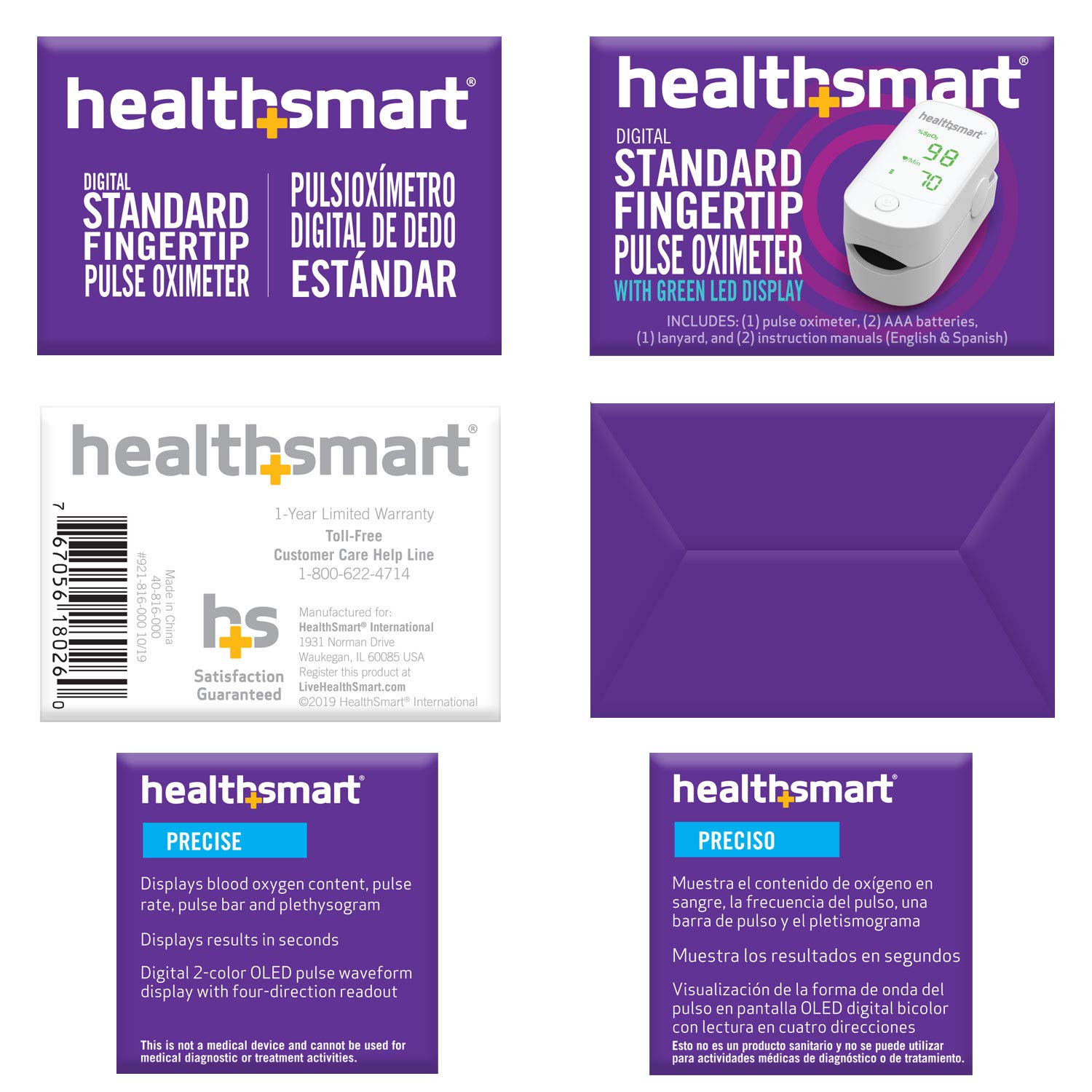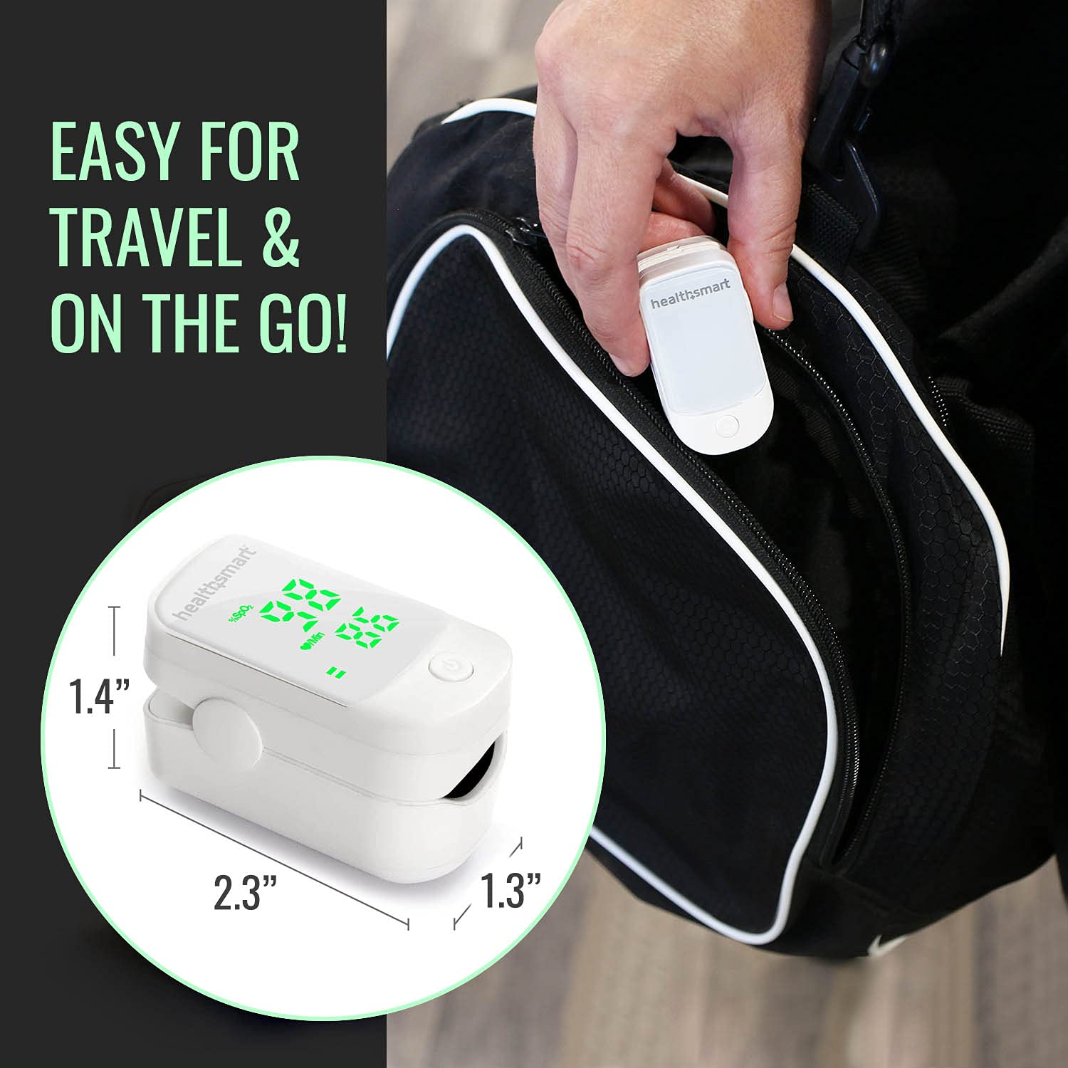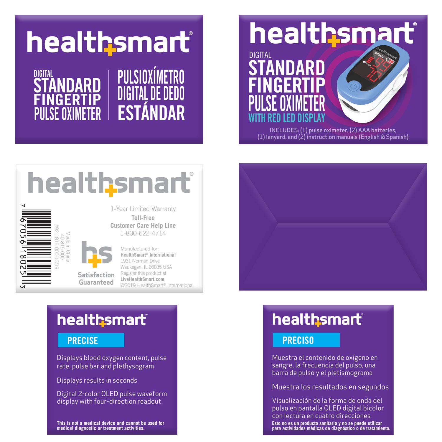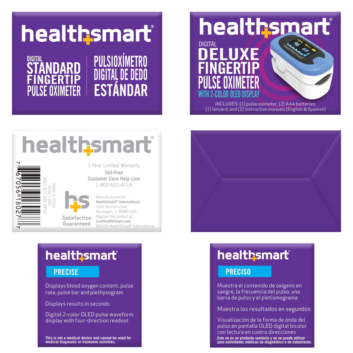 HealthSmart Pulse Oximeter for Fingertip That Displays Blood Oxygen Saturation Content, Pulse Rate and Pulse Bar with LED Display and Readout, Accurate and Reliable, Deluxe