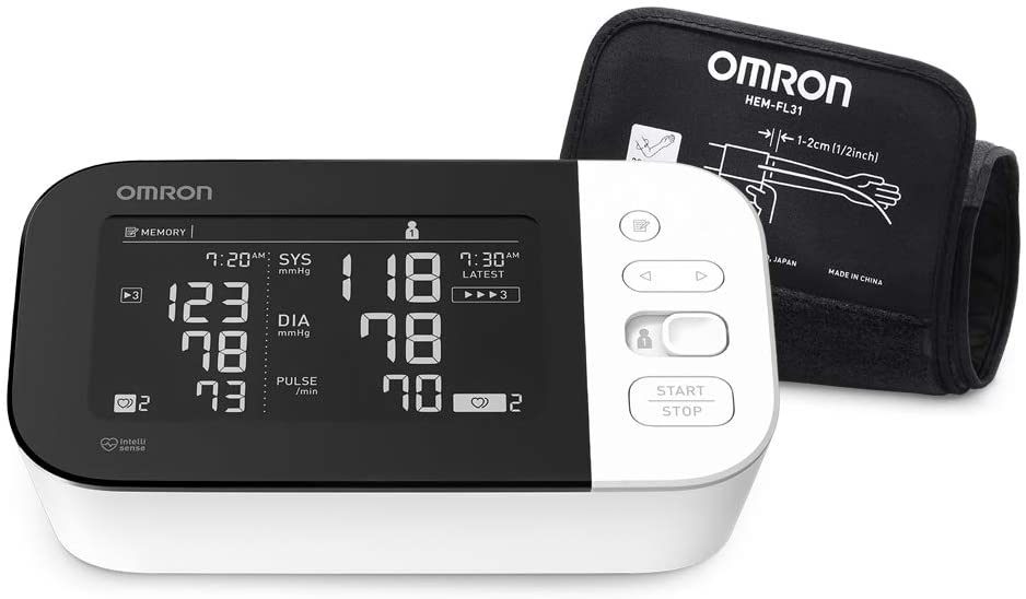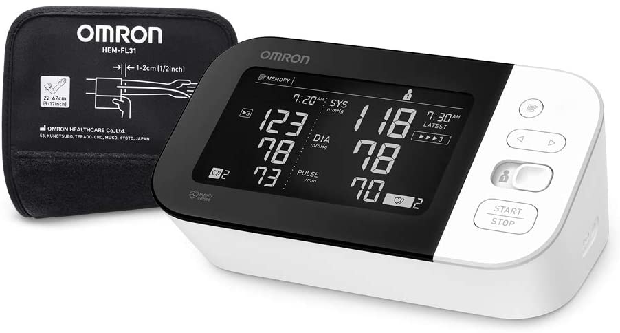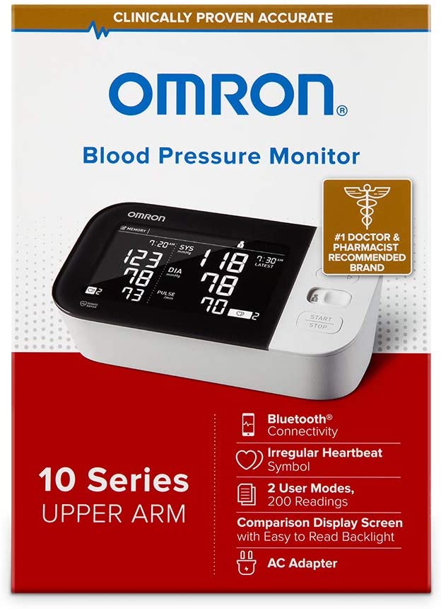 The Omron 10 Series Wireless monitor can be used with two users for blood pressure readings, and for detecting irregular heartbeats. It will store up to 200 blood pressure readings (100 per user), but when used with the free Omron Connect app, it supports unlimited users and stores unlimited blood pressure readings. Conveniently view your trend graphs and charts, and share as needed with your family, caregivers or doctors. The free Omron Connect app works with iOS and Android devices, as well as Amazon Alexa enabled devices using the Omron Health Skill.