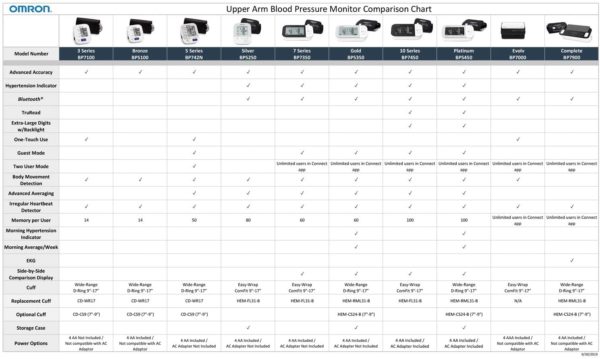 • Compatible with Omron blood pressure monitor models: BP5350, BP5450, BP7200, BP7250, and BP7900