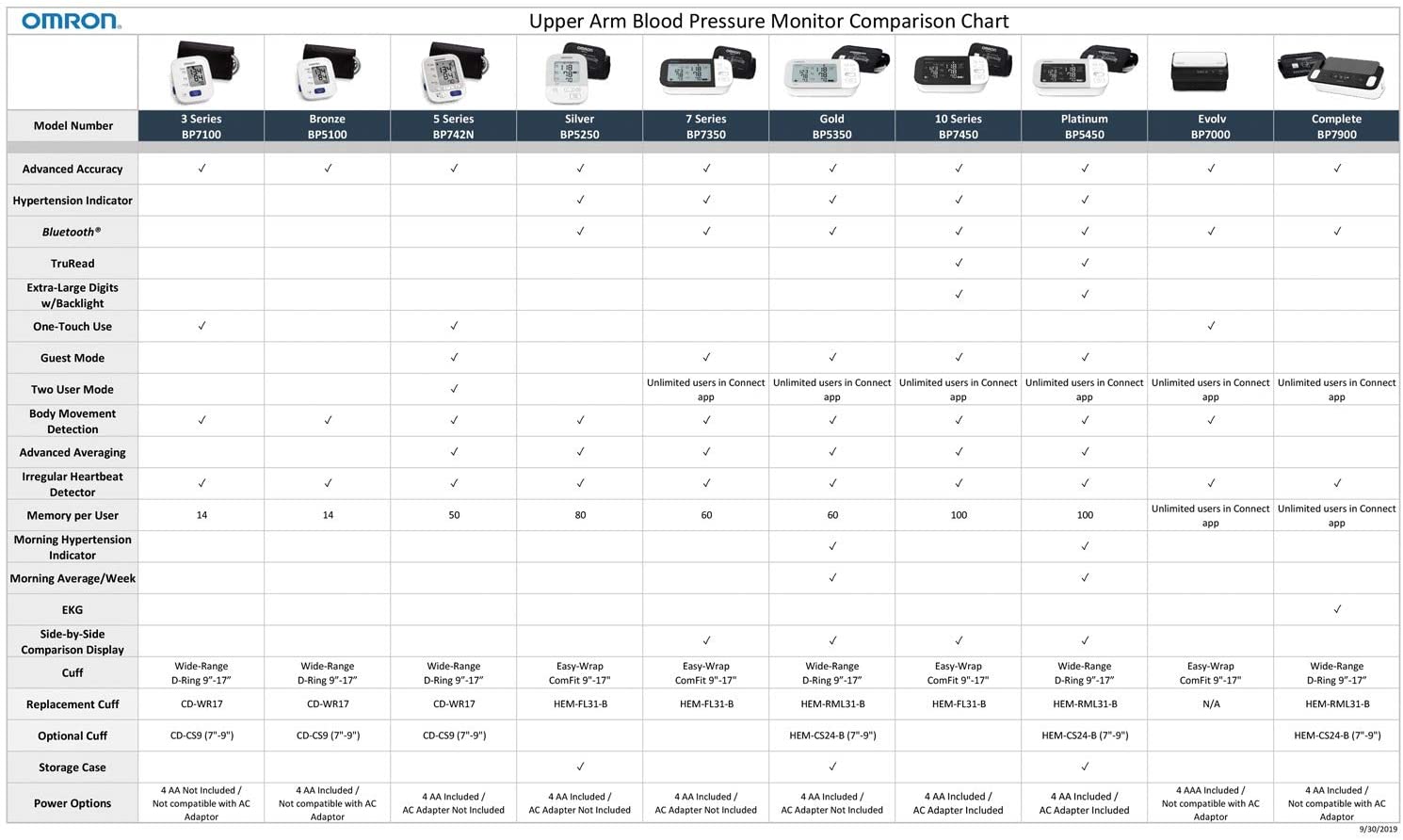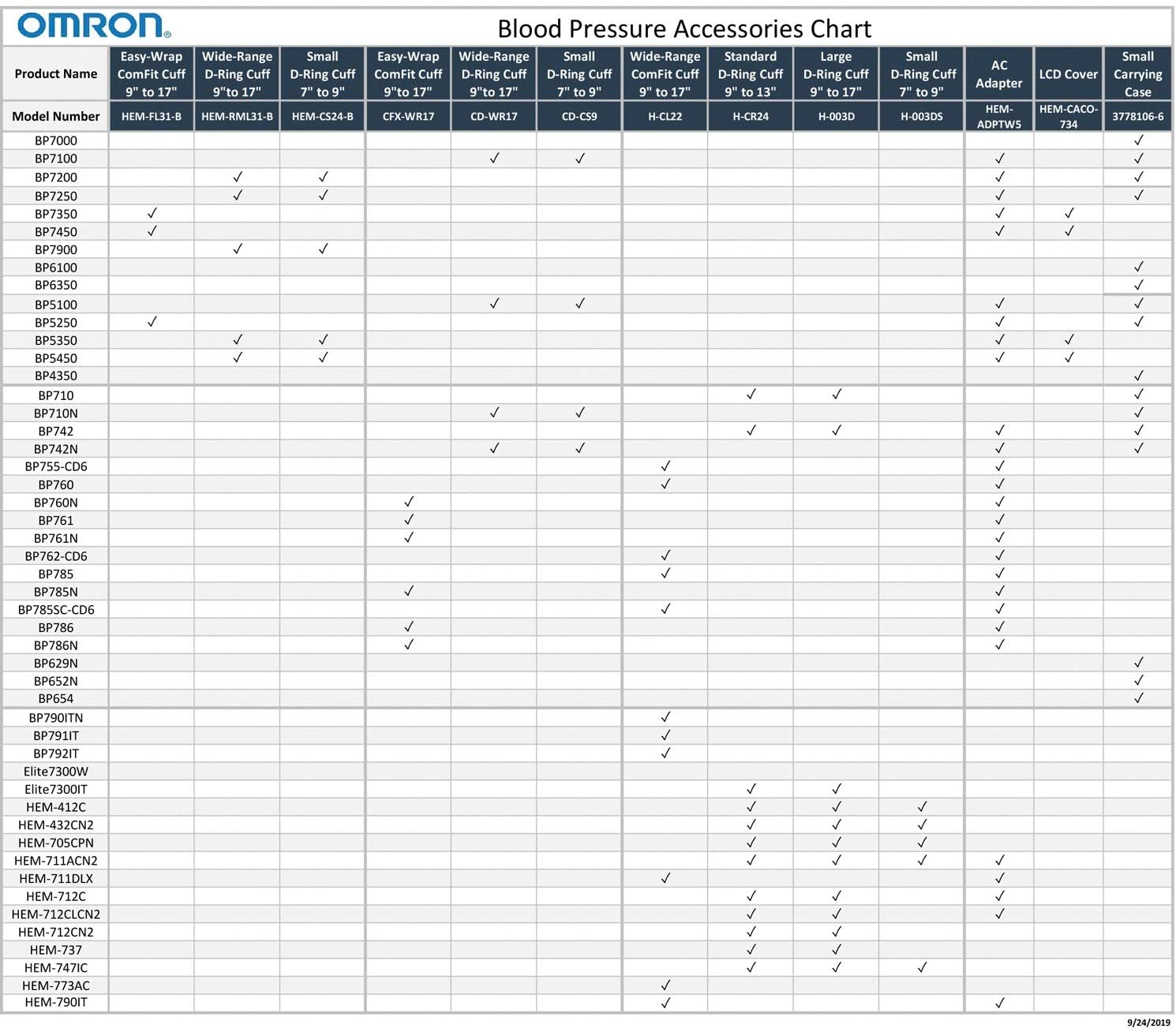 The durable and contoured Omron wide range D-ring cuff wide range cuff fits arms 9 in. To 17 in. In circumference. Before you purchase a home blood pressure Monitor, it’s important to determine the best cuff Size for you. To determine your appropriate cuff Size, Use a cloth measuring tape and measure the circumference of your left upper arm, midway between your elbow and shoulder. Ensuring that the blood pressure cuff is neither too tight nor too loose will help ensure the most Accurate readings, providing you a more accurate picture of your heart’s health. This cuff is only compatible with Omron blood pressure Monitor models: BP5350, BP5450, BP7200, BP7250, BP7900.